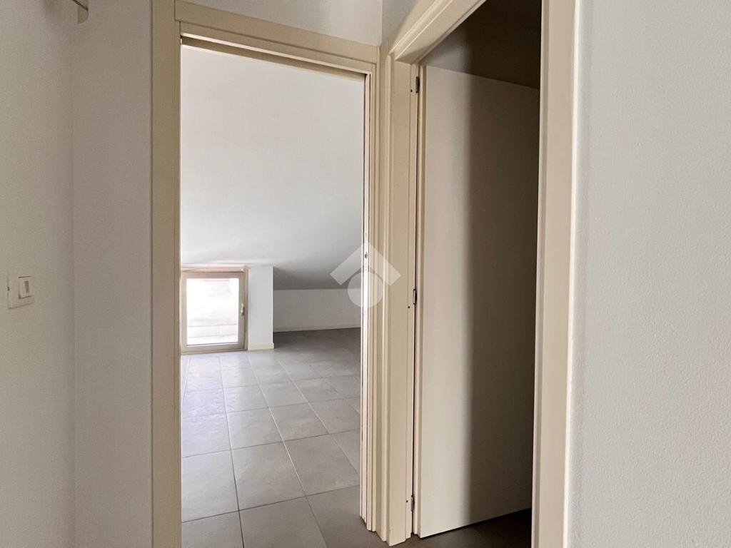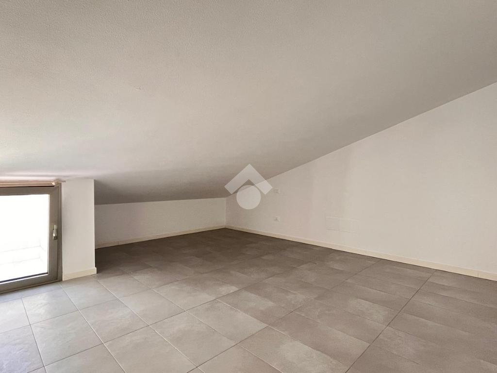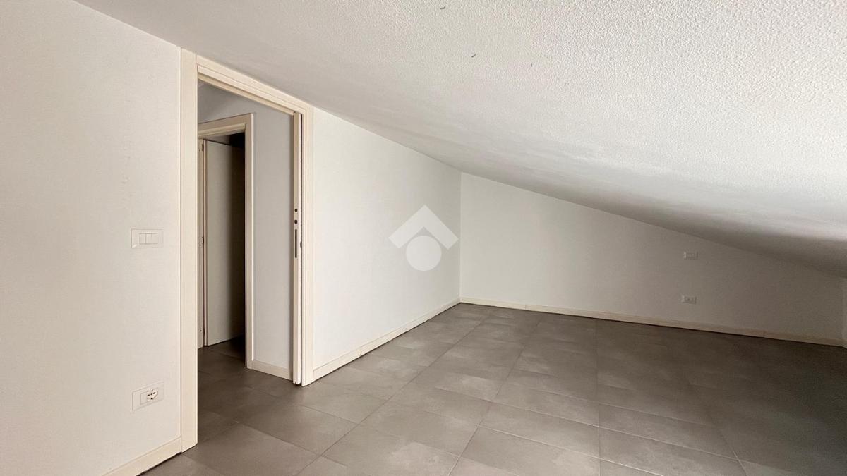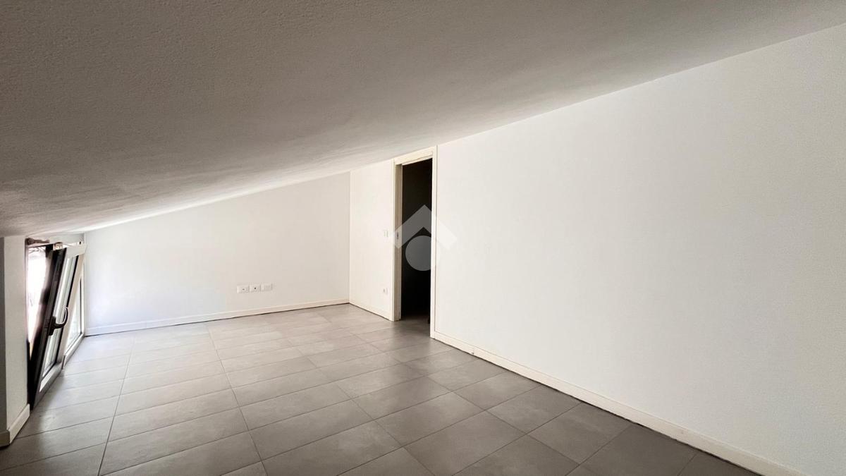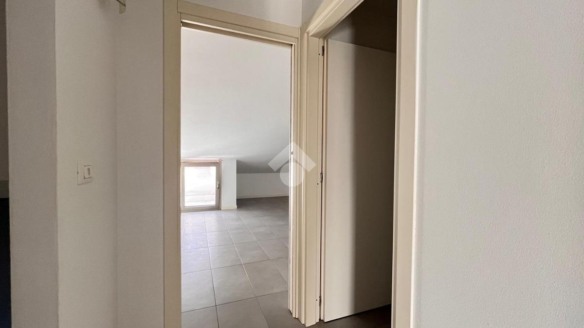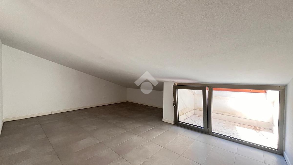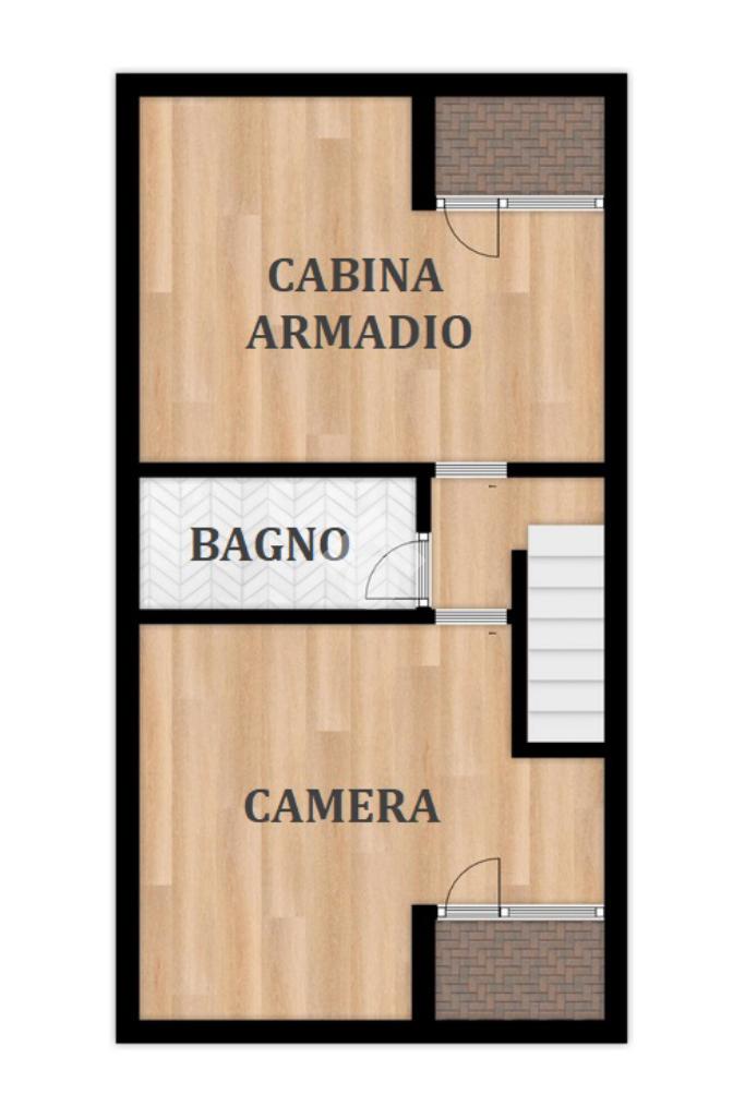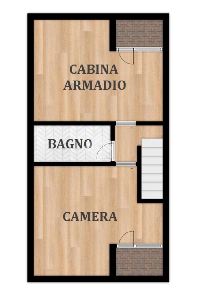 Al primo livello si trova un’ampia zona giorno composta da un soggiorno luminoso con accesso al terrazzo privato, una cucina separata e un bagno finestrato con doccia. Salendo al piano superiore, l’appartamento ospita una camera matrimoniale e una seconda stanza adibita a cabina armadio. Su questo livello è presente anche un secondo bagno cieco con doccia.