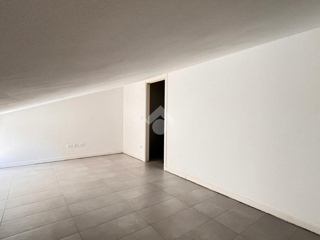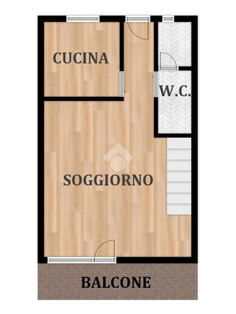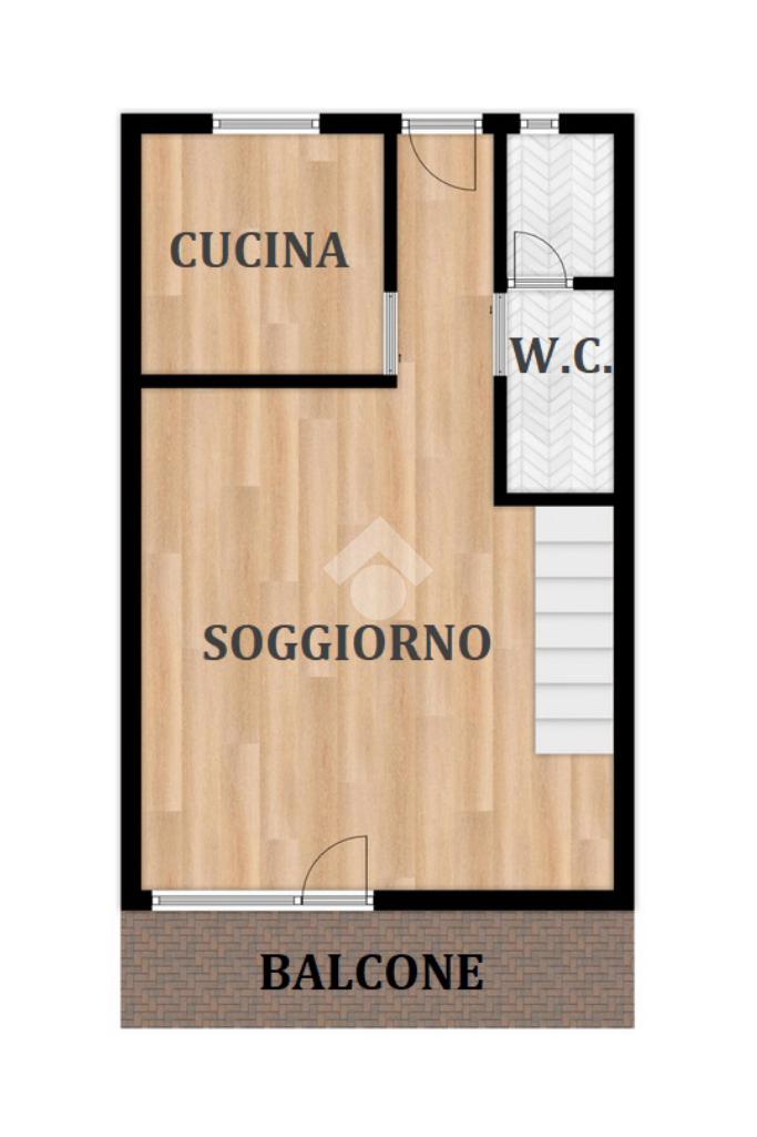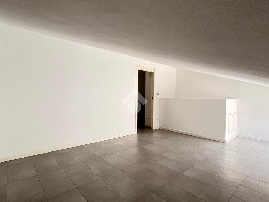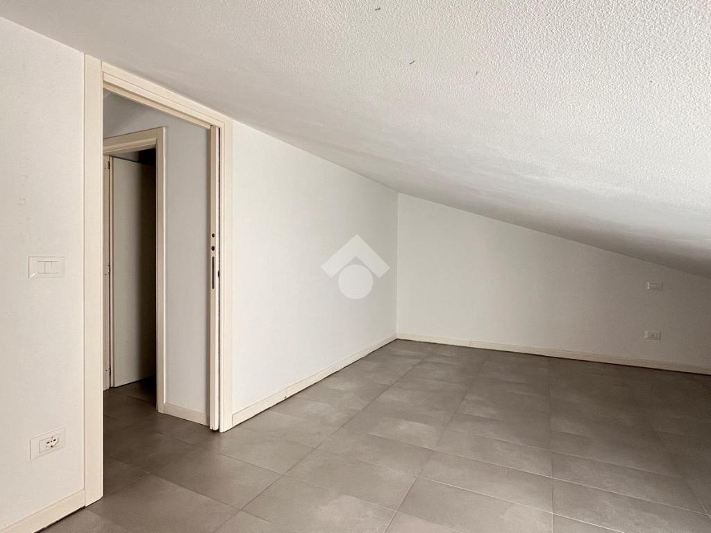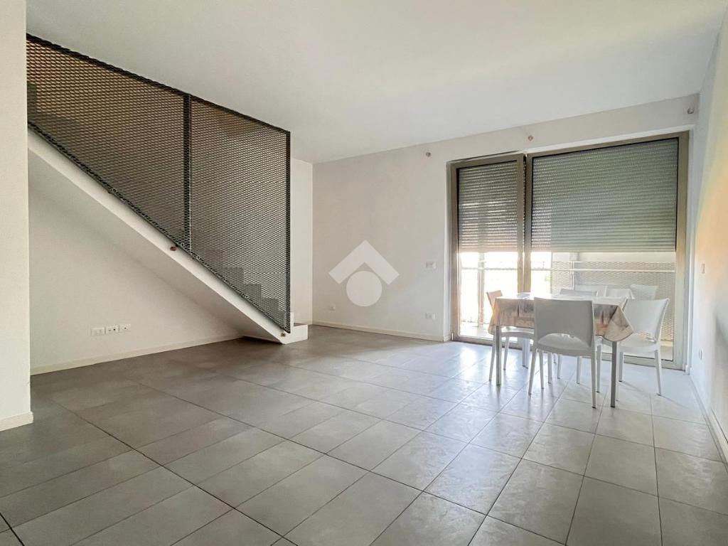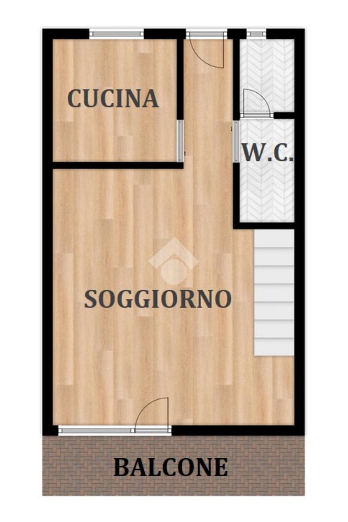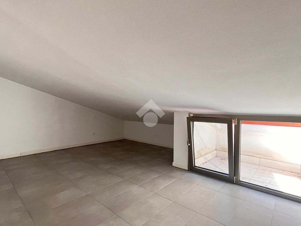 Al primo livello si trova un’ampia zona giorno composta da un soggiorno luminoso con accesso al terrazzo privato, una cucina separata e un bagno finestrato con doccia. Salendo al piano superiore, l’appartamento ospita una camera matrimoniale e una seconda stanza adibita a cabina armadio. Su questo livello è presente anche un secondo bagno cieco con doccia.