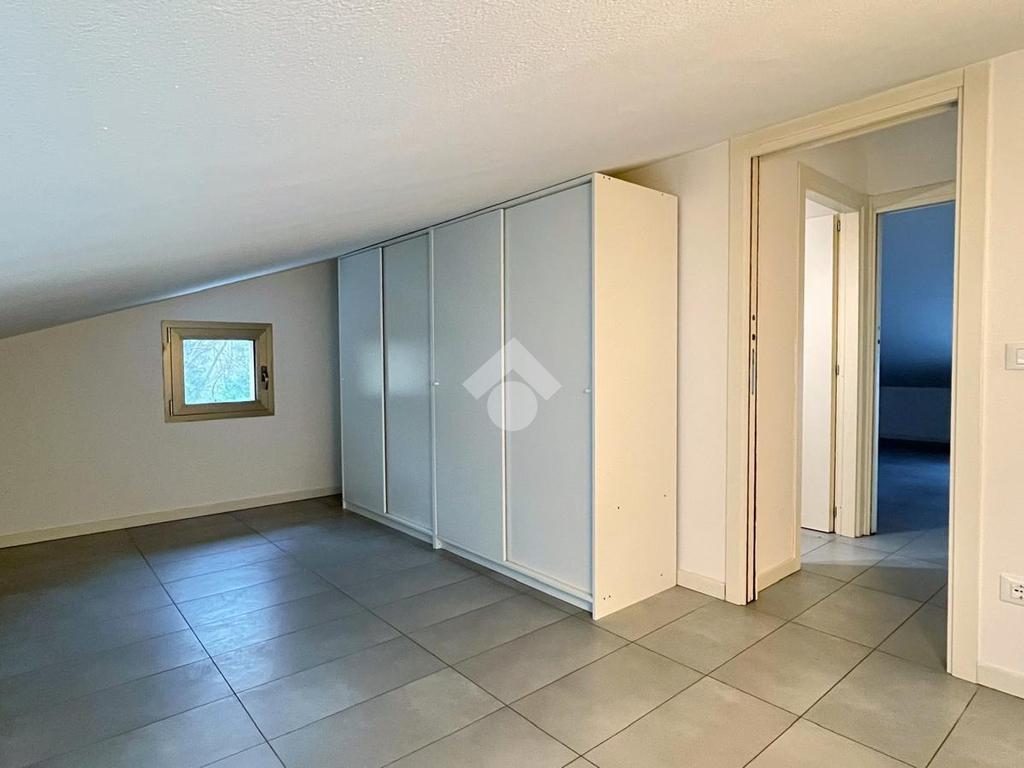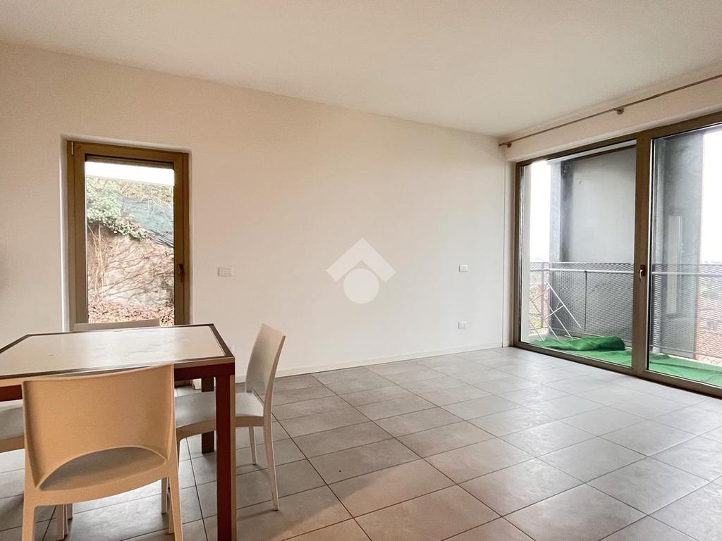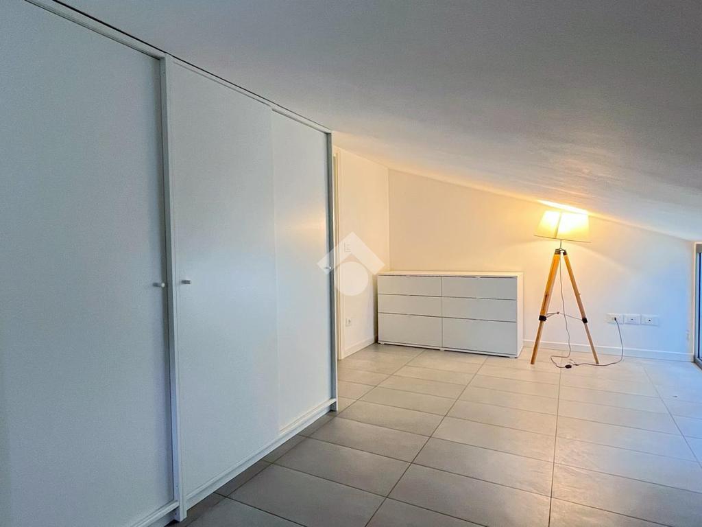 All’interno di un residence tranquillo e ben curato, proponiamo in locazione un appartamento sito al secondo ed ultimo piano, disposto su due livelli. Al primo livello si trova un’ampia zona giorno composta da un soggiorno luminoso con accesso al balcone privato e un giardino di proprietà, una cucina separata e un bagno finestrato con doccia. Salendo al piano superiore, l’appartamento ospita una camera matrimoniale e una seconda stanza adibita a cabina armadio. Su questo livello è presente anche un secondo bagno cieco con doccia. L’immobile è dotato di riscaldamento centralizzato a pavimento e viene locato parzialmente arredato, come da foto. Il piano superiore verrà ulteriormente arredato con una armadiatura su misura nella cabina armadio e con una struttura letto e due comodini nella camera matrimoniale. Completa la proprietà un comodo posto auto coperto e cantina all’interno del residence. Soluzione ideale per una coppia o per una persona singola in cerca di un ambiente curato e confortevole. Il canone mensile richiesto è di €780, oltre alle spese condominiali mensili di €200 (comprensivo di riscaldamento e acqua). L’appartamento non prevede la possibilità di ospitare animali domestici.