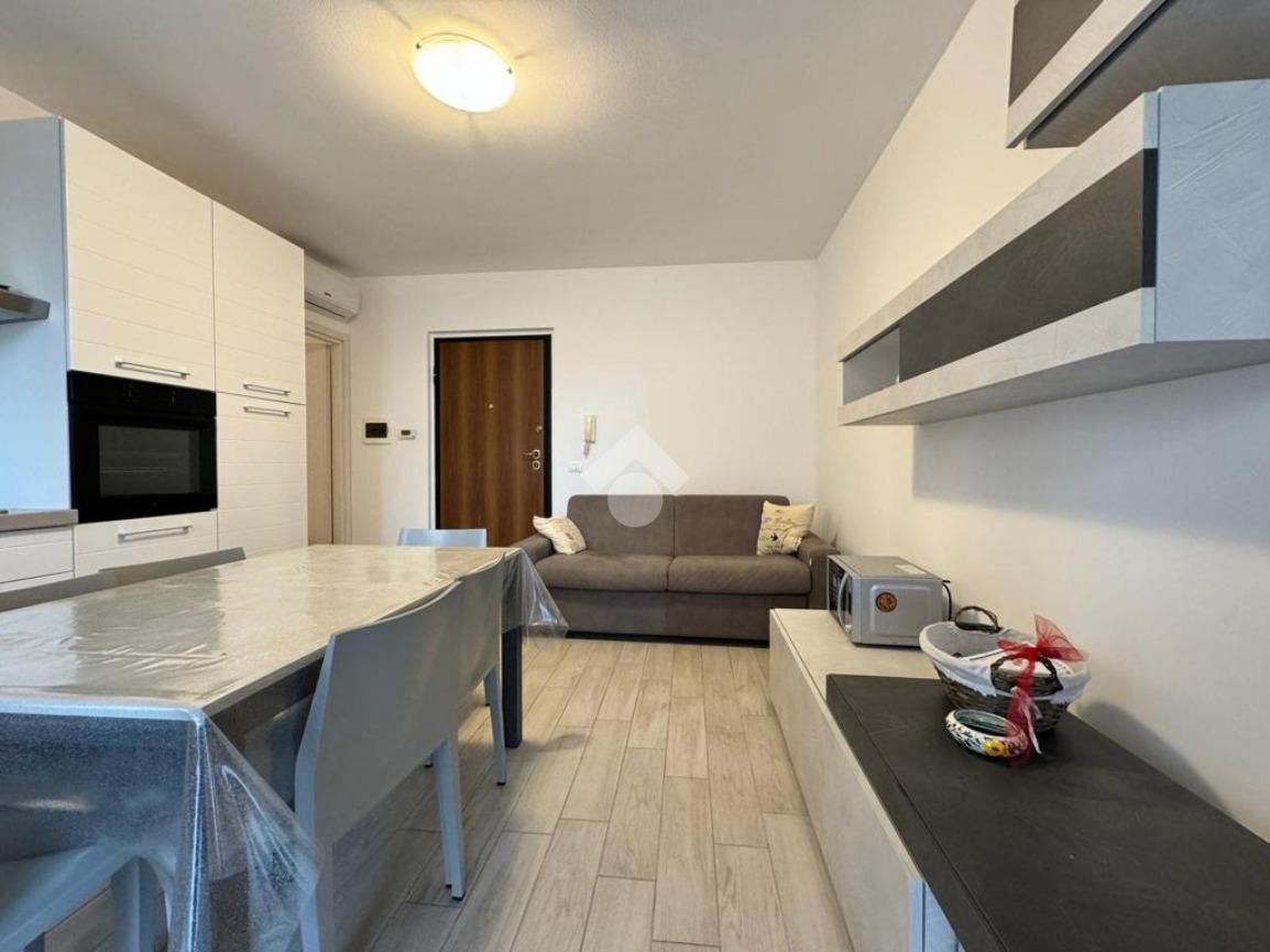 Appartamento completamente arredato in locazione disponibile dal 1° maggio, inserito in un contesto residenziale edificato nel 2005 e caratterizzato da un ambiente curato e tranquillo. L’immobile si trova al primo piano e si apre direttamente su una luminosa zona giorno con soggiorno e cucina open space, uno spazio accogliente e funzionale dal quale si accede a un terrazzo abitabile, ideale per momenti di relax all’aperto.