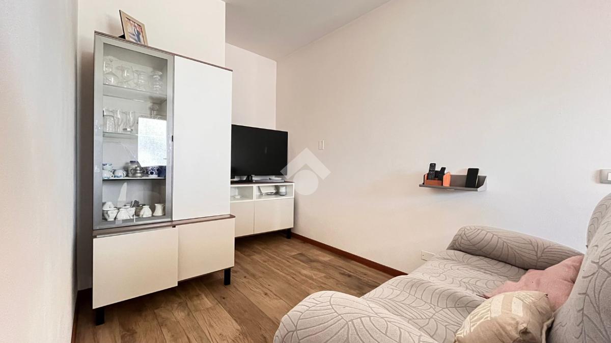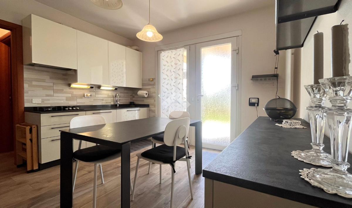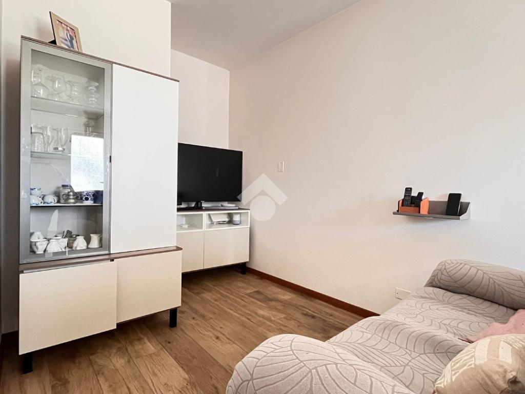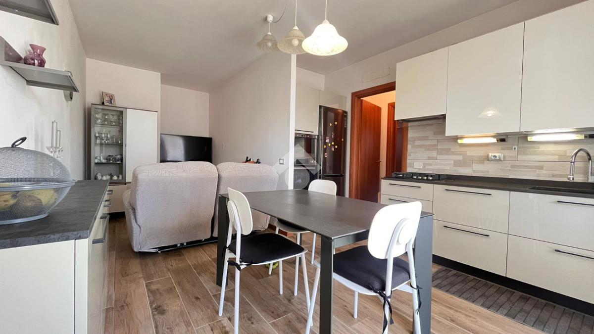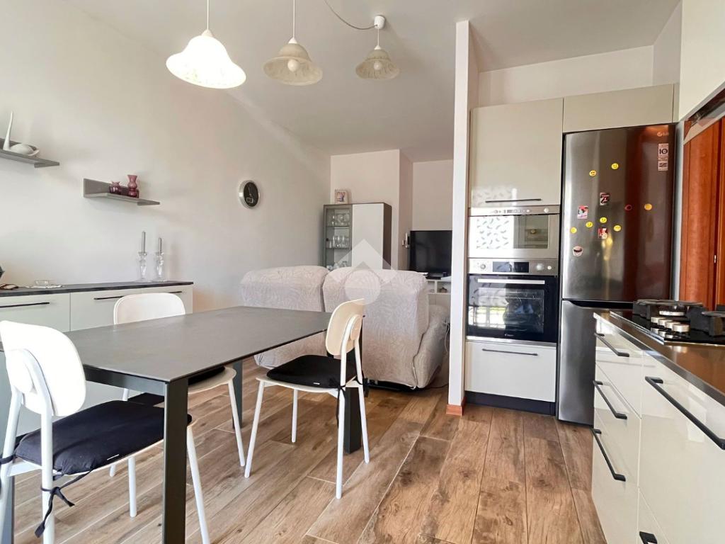 L’ingresso si apre su una luminosa zona living con cucina a vista, dove ogni dettaglio è pensato per offrire comfort e funzionalità.
