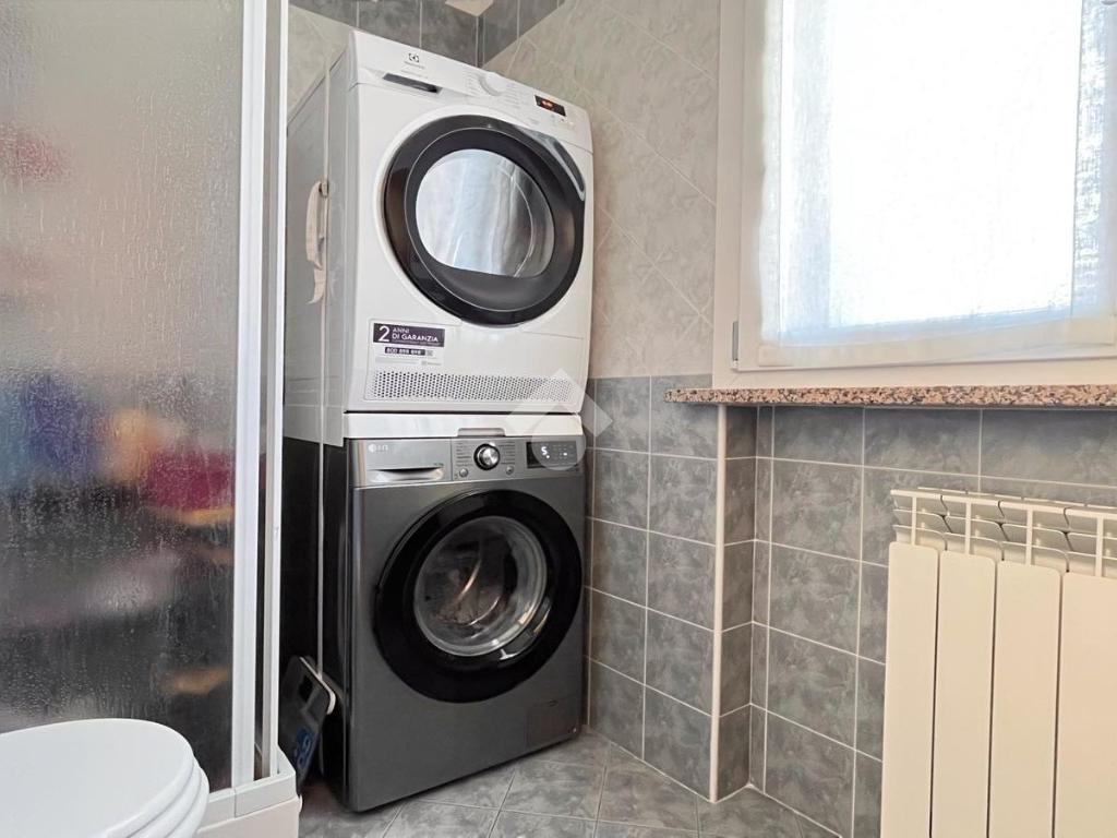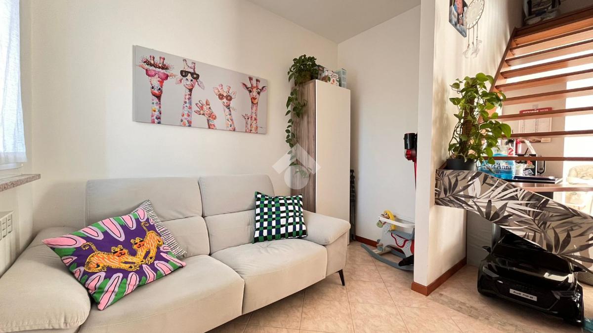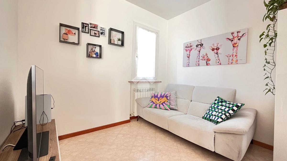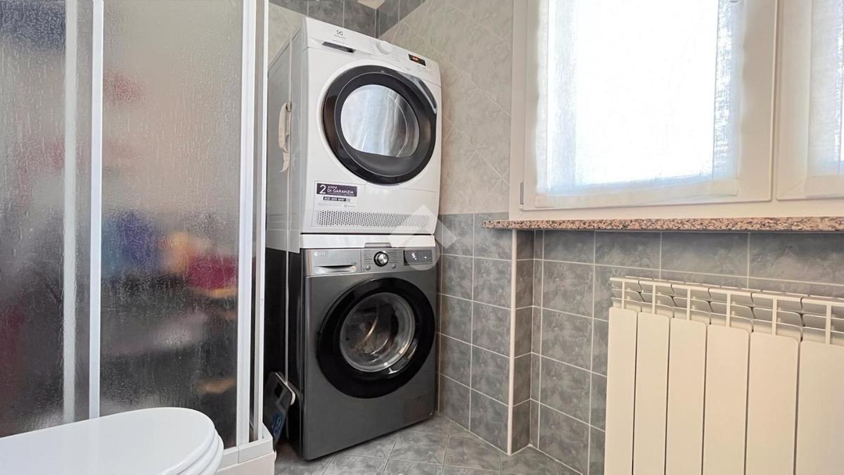 L’ingresso conduce direttamente nella zona giorno open-space, composta da una cucina con sala da pranzo particolarmente luminosa grazie alla porta finestra che affaccia su un comodo balcone. Il soggiorno, pur essendo comunicante con la cucina, gode di una piacevole indipendenza che lo rende accogliente e riservato. Sul medesimo livello si trova inoltre un bagno finestrato con doccia, attualmente adibito anche a zona lavanderia.