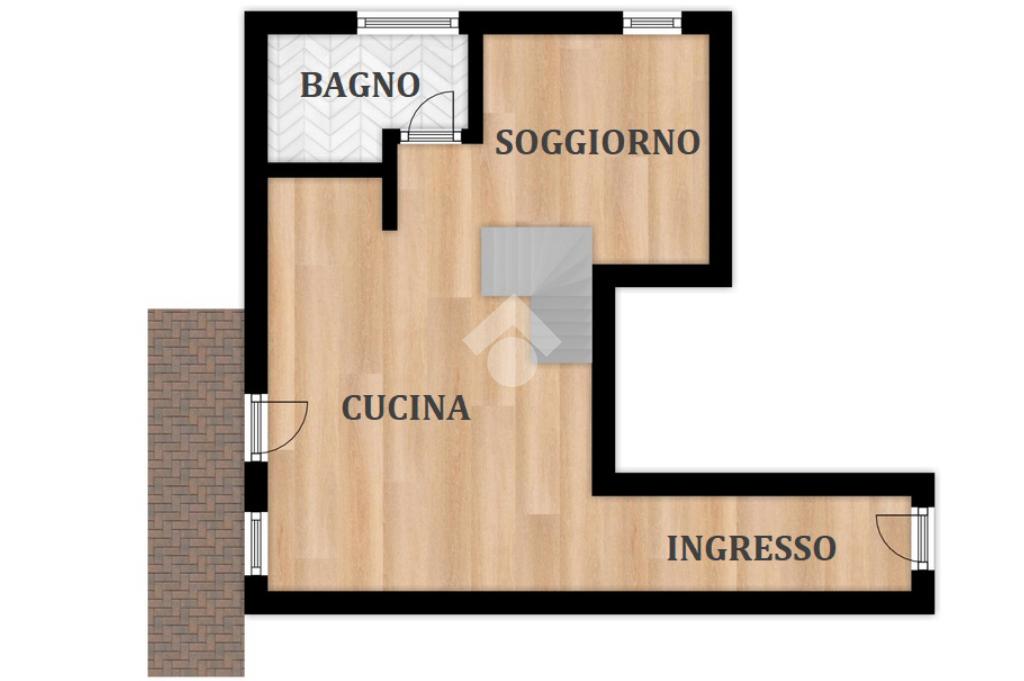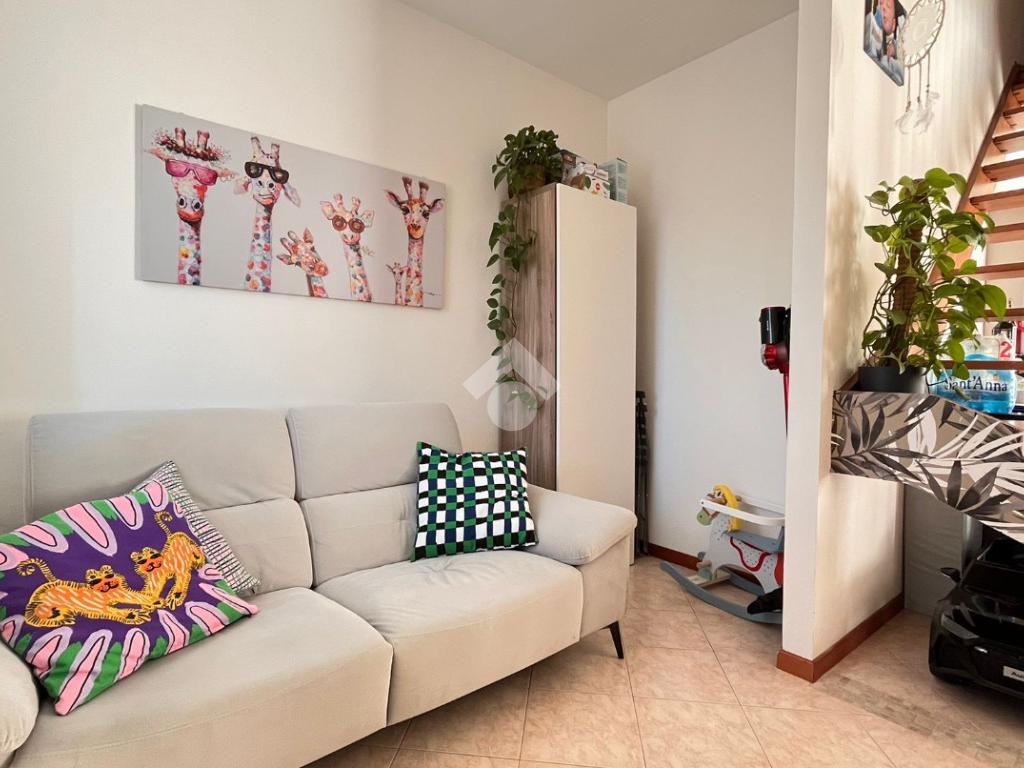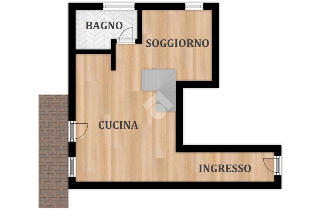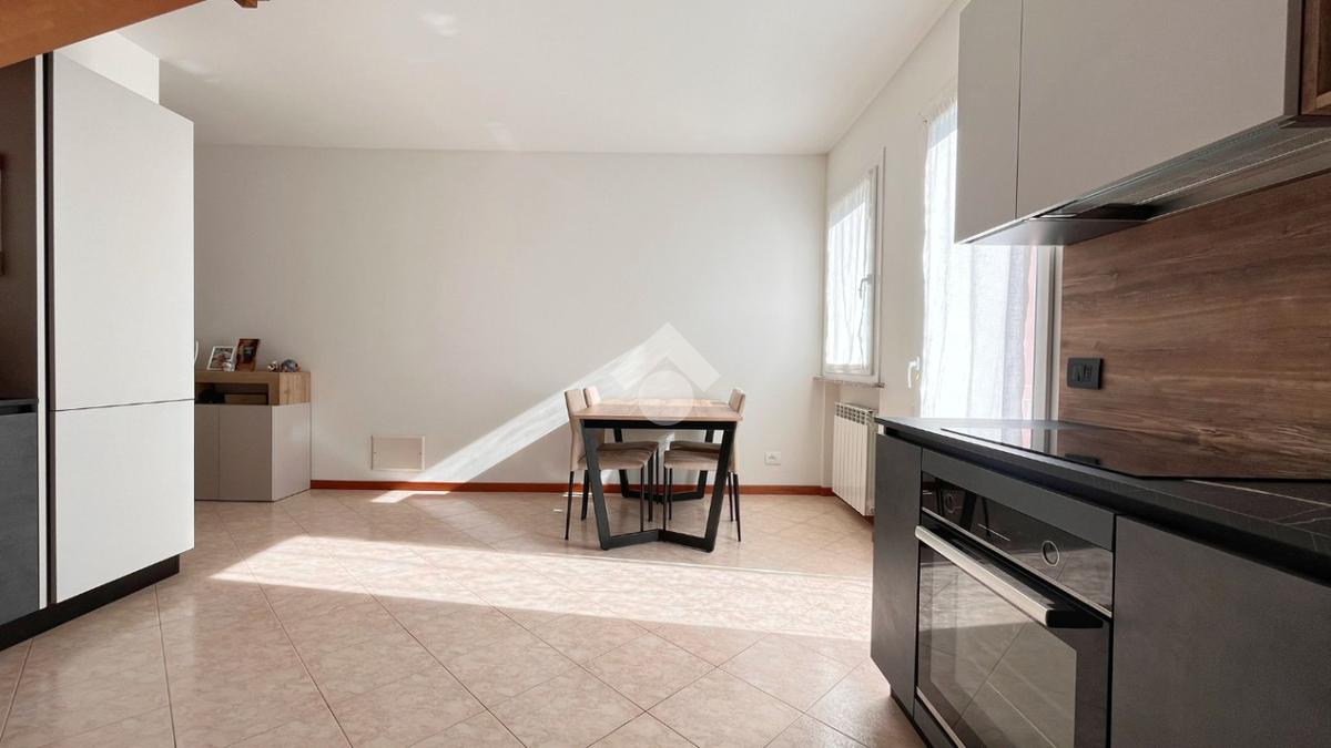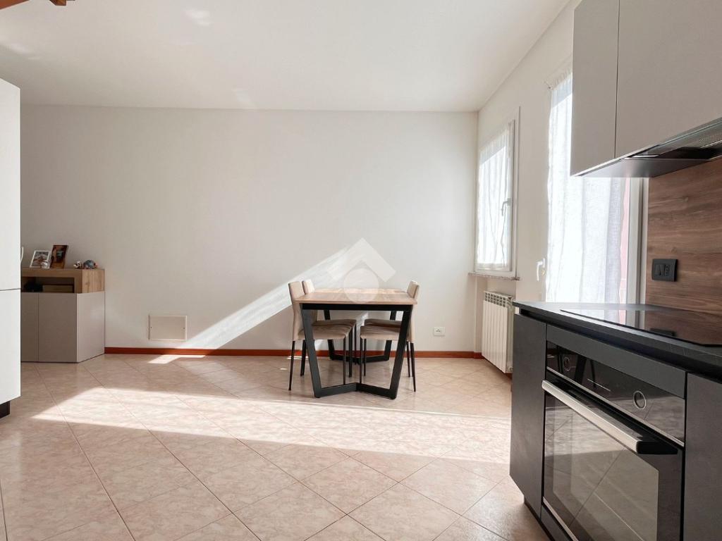 L’ingresso conduce direttamente nella zona giorno open-space, composta da una cucina con sala da pranzo particolarmente luminosa grazie alla porta finestra che affaccia su un comodo balcone. Il soggiorno, pur essendo comunicante con la cucina, gode di una piacevole indipendenza che lo rende accogliente e riservato. Sul medesimo livello si trova inoltre un bagno finestrato con doccia, attualmente adibito anche a zona lavanderia.