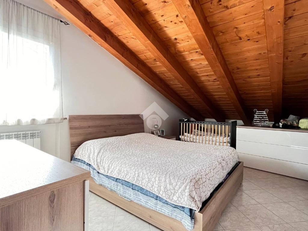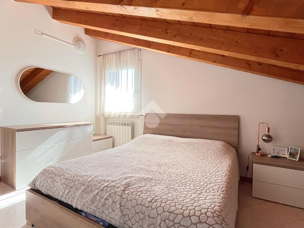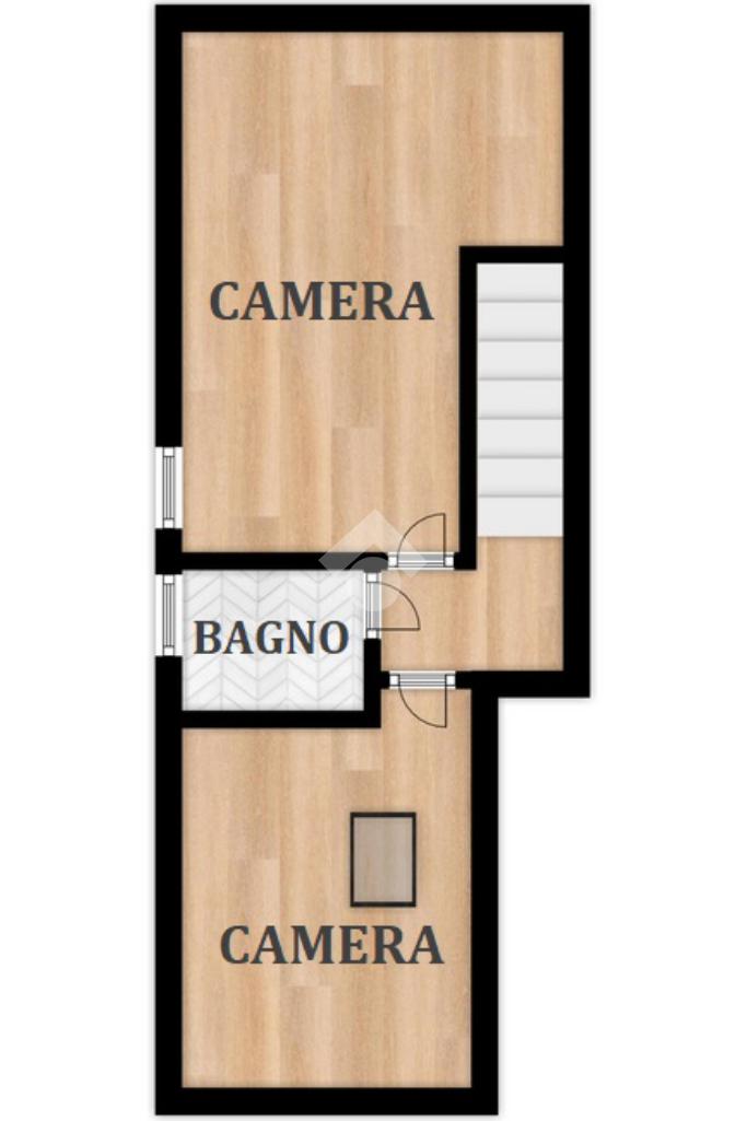 Al piano superiore si sviluppa la zona notte, composta da una spaziosa camera matrimoniale, una camera singola e un secondo bagno finestrato con doccia.