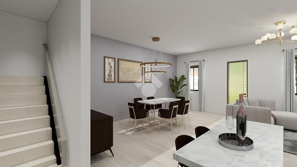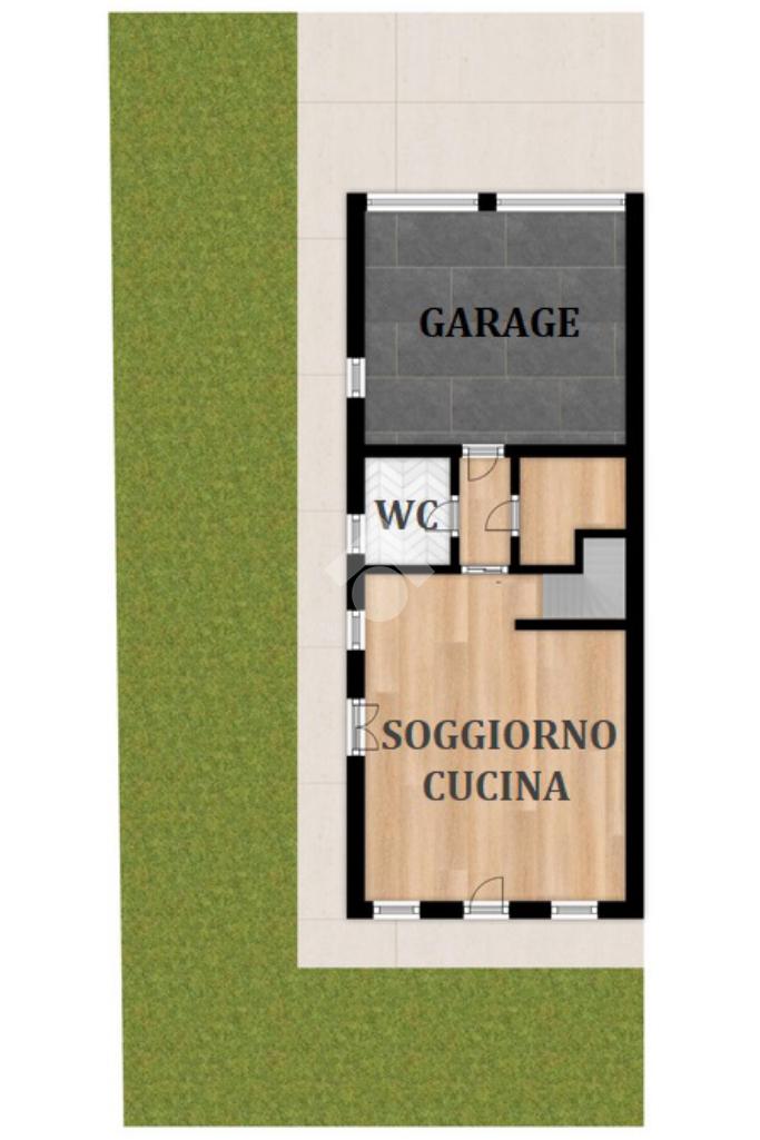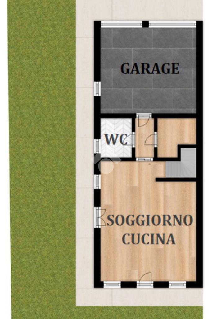 Al piano terra si apre un ampio open-space di circa 33 mq, con soggiorno e cucina integrati in un unico ambiente conviviale, arricchito da grandi aperture che conducono al giardino privato, perfetto per trascorrere momenti di relax all’aperto. Il piano è completato da un bagno finestrato, un comodo ripostiglio e l’accesso diretto alla doppia autorimessa. Inoltre possibile ampliare la zona giorno e realizzare una cucina separata utilizzando una parte del garage, creando così una luminosa vetrata che dona ulteriore ariosità e luce naturale all’ambiente, mantenendo comunque un’autorimessa singola.