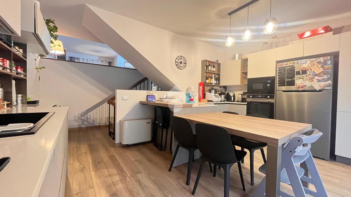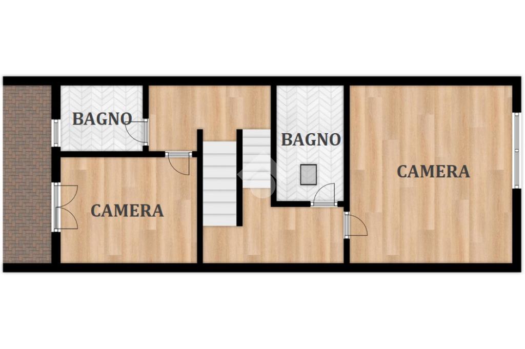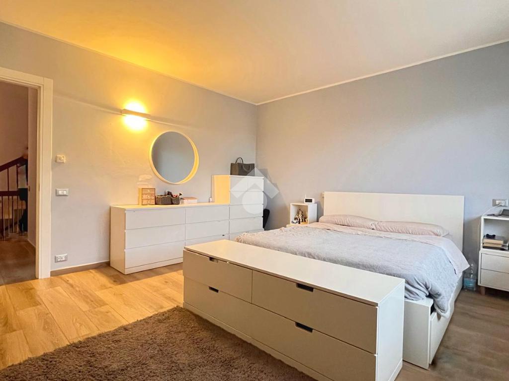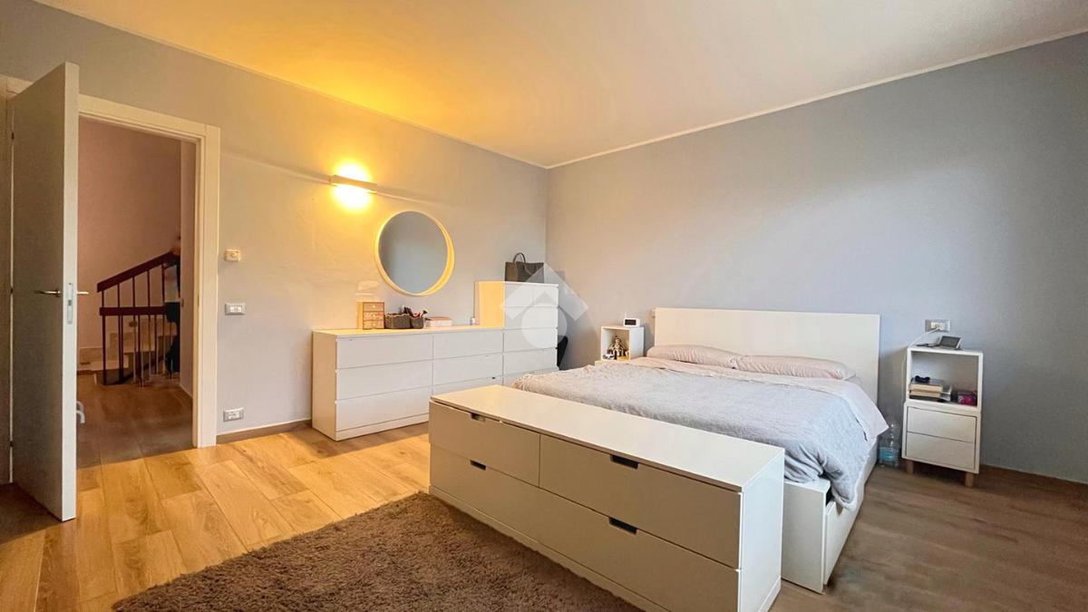 La zona notte, distribuita al primo piano, ospita una cameretta con balcone, una confortevole camera matrimoniale e due bagni finestrati entrambi con doccia, pensati per unire praticità e comfort. Al secondo e ultimo piano, un ulteriore ambiente versatile si presta a diventare una raffinata camera padronale oppure uno studio silenzioso e riservato.