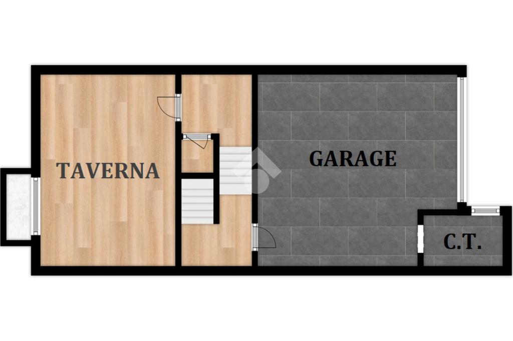 Nel piano interrato trova spazio una caratteristica taverna con camino, ambiente ideale per convivialità e momenti in famiglia, collegata al garage con accesso indipendente.