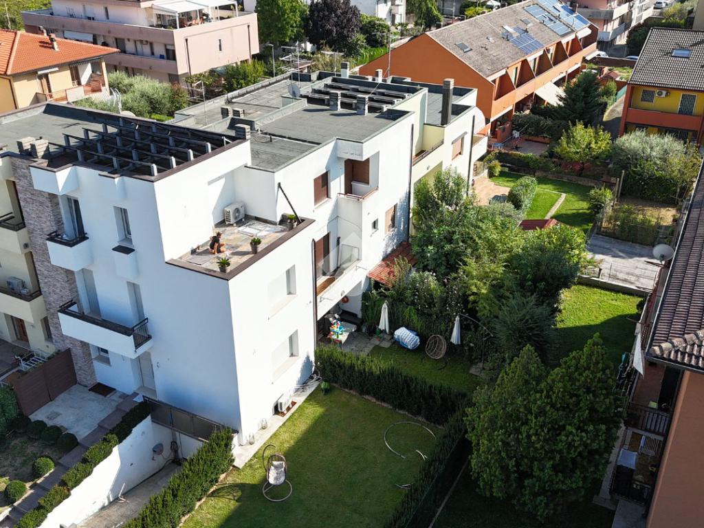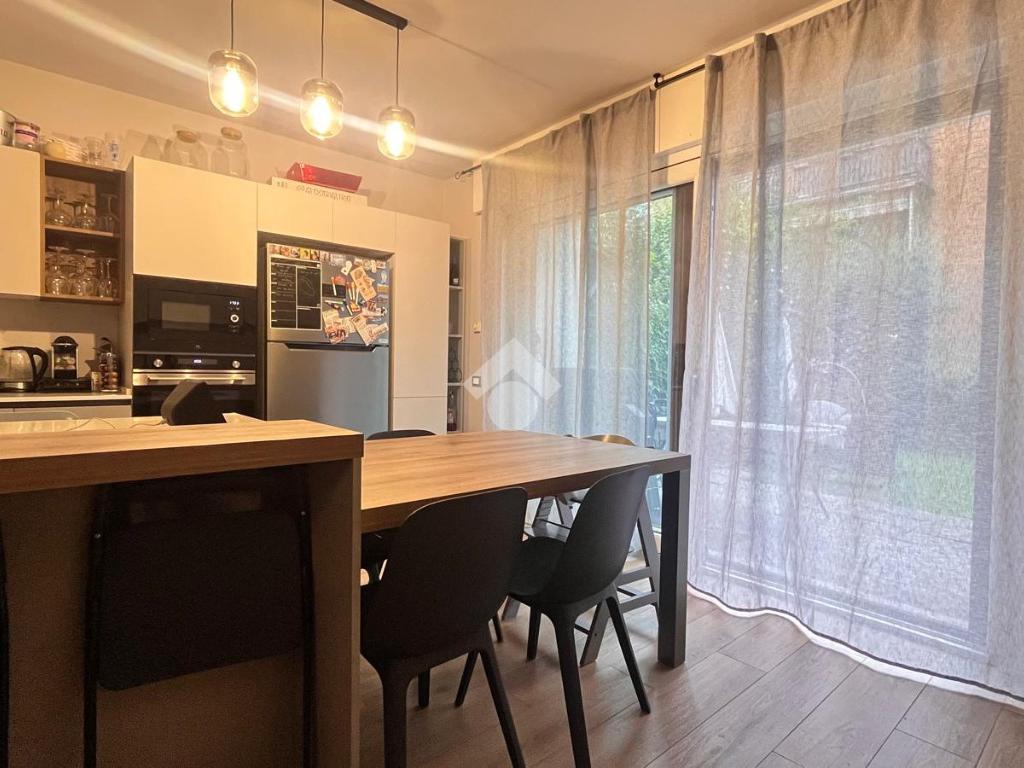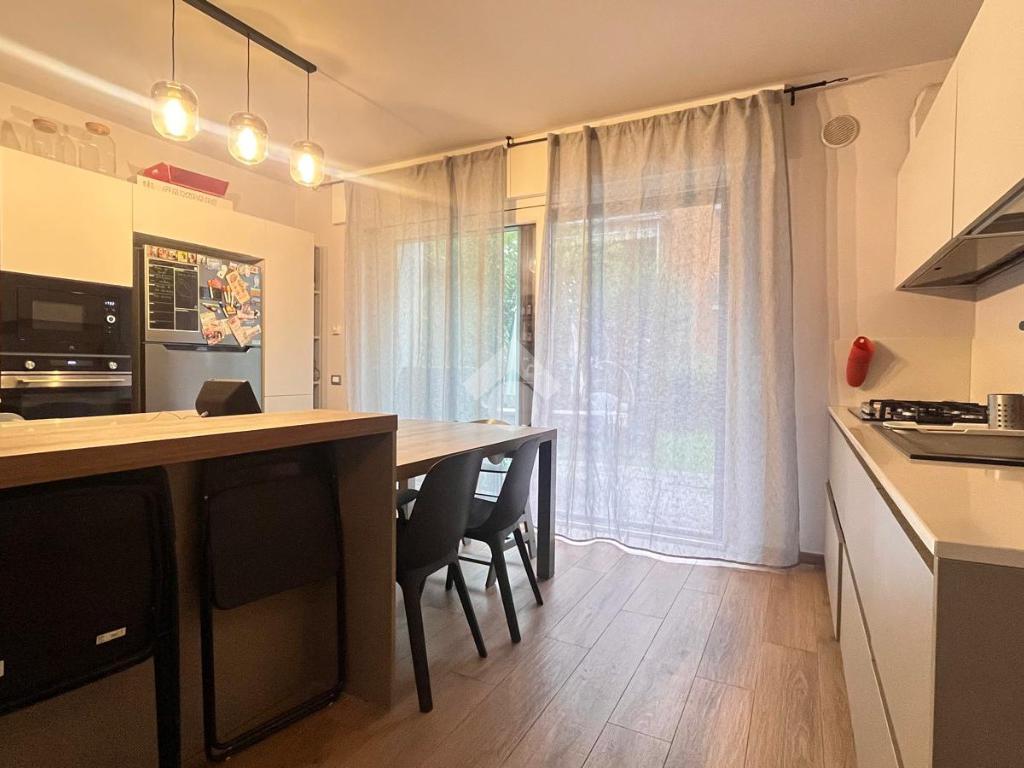 All’ingresso indipendente si viene accolti da un soggiorno luminoso e accogliente, dove ogni dettaglio è stato pensato per rendere gli spazi caldi e funzionali. La cucina abitabile, separata ma in perfetta continuità con la zona giorno, regala l’accesso diretto al giardino privato sul retro: un angolo verde da vivere in ogni stagione, ideale per pranzi all’aperto o per momenti di puro relax.