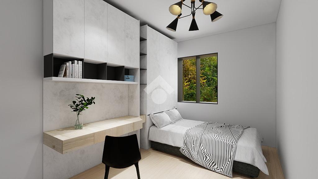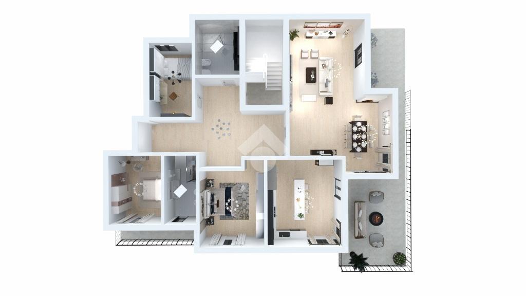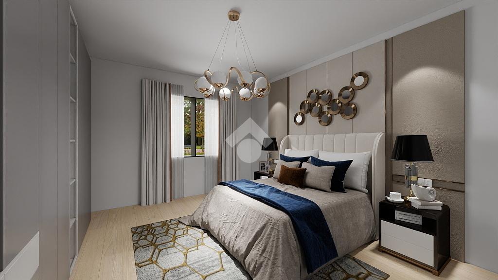 Un disimpegno introduce la zona notte, dove trovano spazio una camera matrimoniale, due camere doppie e due bagni, uno finestrato e uno cieco.