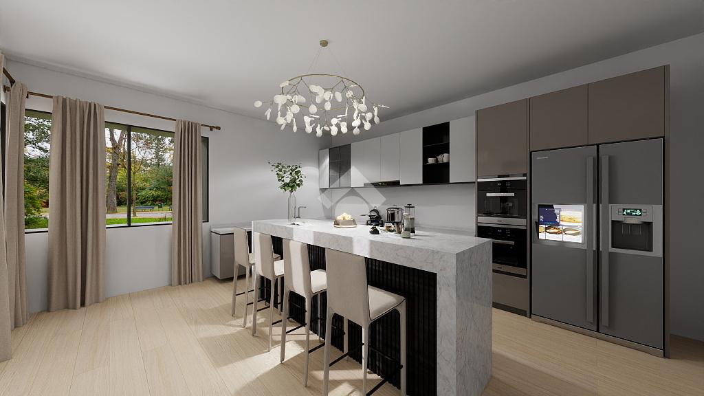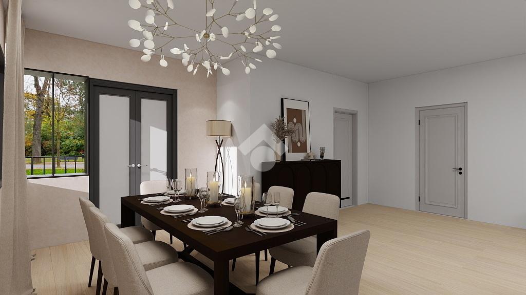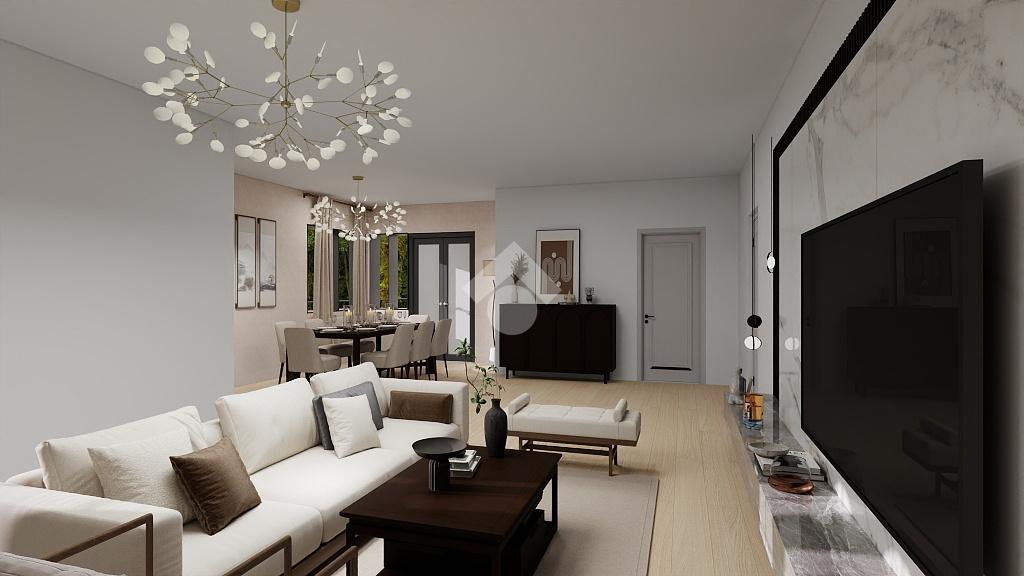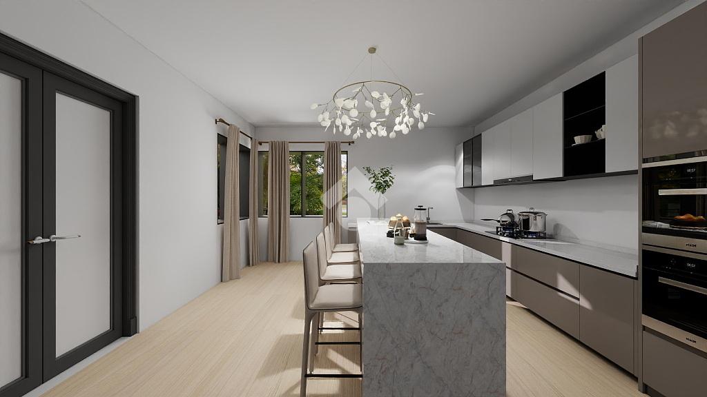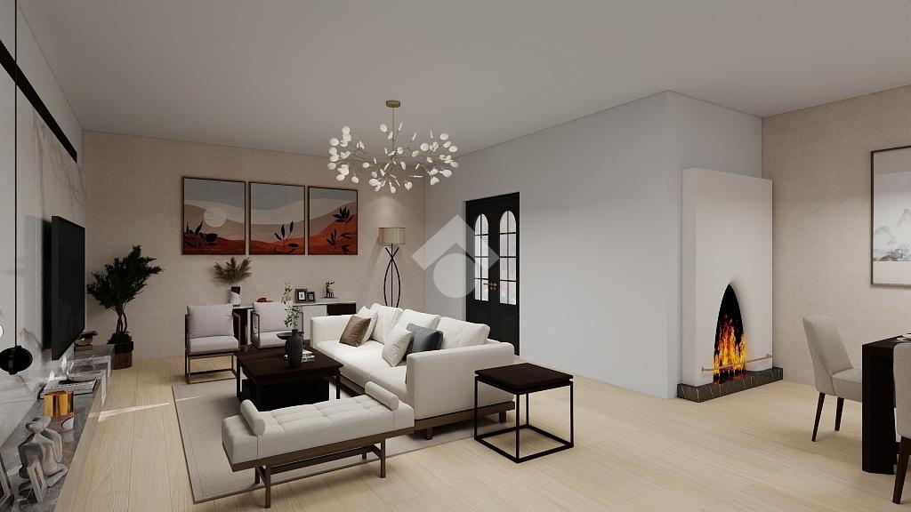 L’ingresso si apre su una zona giorno ampia e luminosa, impreziosita da un camino. La cucina, separata e comodamente abitabile, si affaccia insieme al soggiorno su un grande terrazzo ideale per momenti di relax all’aperto.